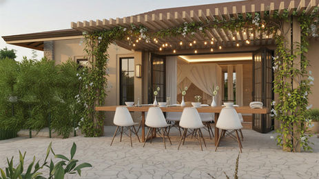 The villas are designed with meticulous attention to detail, incorporating custom features such as outside showers and baths, allowing residents to indulge in a unique outdoor bathing experience. Pergola sun shades provide a shaded retreat from the African sun, while an open kitchen concept encourages a seamless flow between indoor and outdoor living.